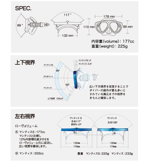 国内メーカー故の品質の高さ、「日本人の顔にジャストフィットするマスク」としてロングセラーを誇る「マンティス」マスクを容量を小さく、軽量にしつつも視界を広く開発されたモデル!