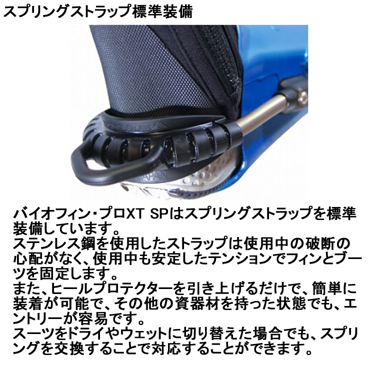 また、破断することがなく迅速に装着できるスプリングストラップも多くの国で採用されています。これらの事実は、レジャーダイバーをはじめ、全てのダイバーにとってバイオフィンが最高・最適のフィンであることの証明といえるでしょう。