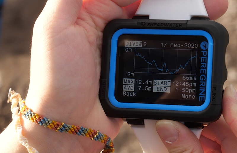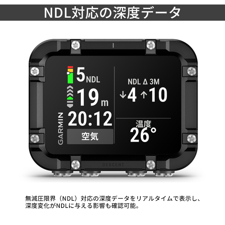 減圧要件の理解に役立つ高度なデータ項目をリアルタイムで確認でき、ダイビング中に判断に迷