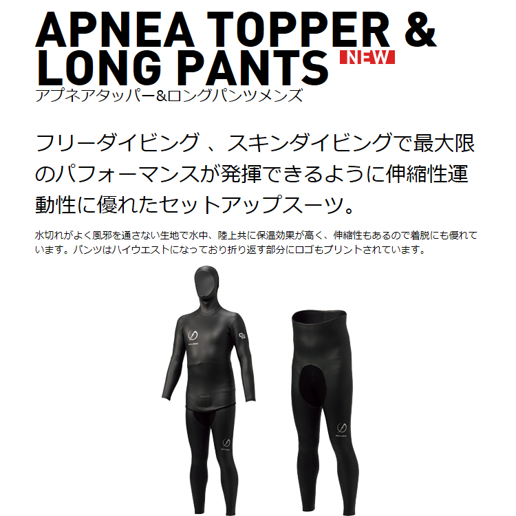 伸縮性が高いソフトスキン素材を採用したSKINロングジョンは着脱性にも優れ風を通さず、内側も遠赤外線素材(FIR)を用いた特性からシーズンをより幅広く活用でき、スクーバダイビング・スキンダイビングのみならず、他のマリンスポーツでも活躍します。