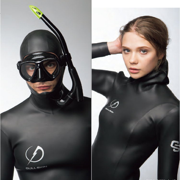 フリーダイビング・スキンダイビングで最大限のパフォーマンスが発揮できるように作り出された伸縮性、運動性に優れたハイブリッドスーツです。