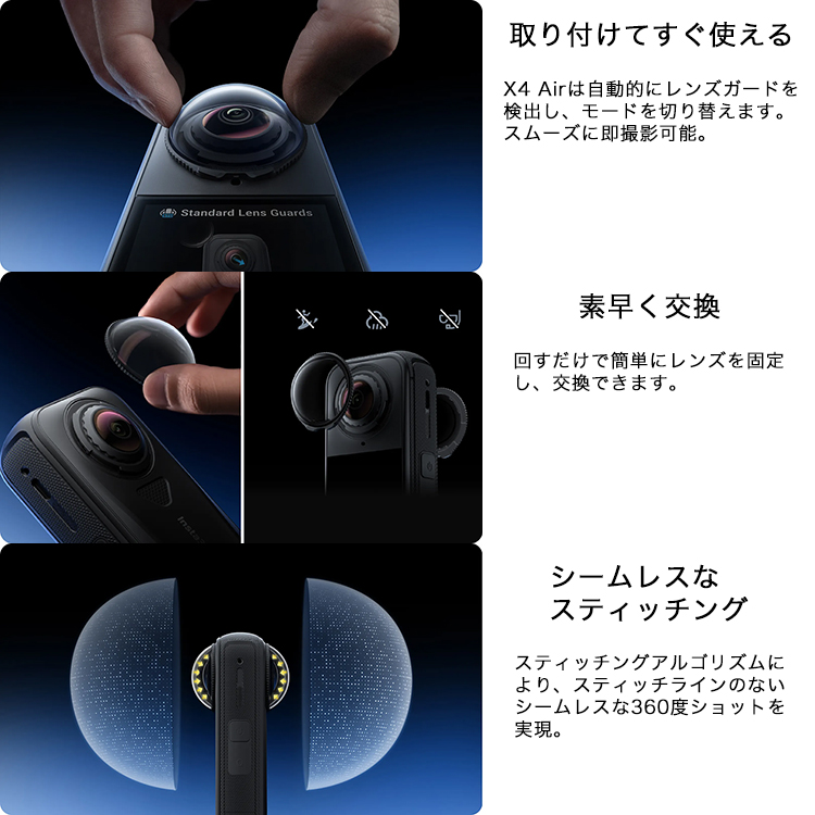 ・Xシリーズのカメラと組合わせると浮遊感のある360度撮影体験を提供します