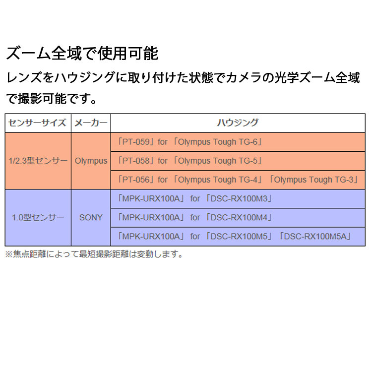 最新の光学設計を踏襲し、オリンパス社「Tough TG」シリーズ、ソニー社「RX100M3/M4/M5A」でも、広角端から四隅のケラレなく撮影可能になりました。