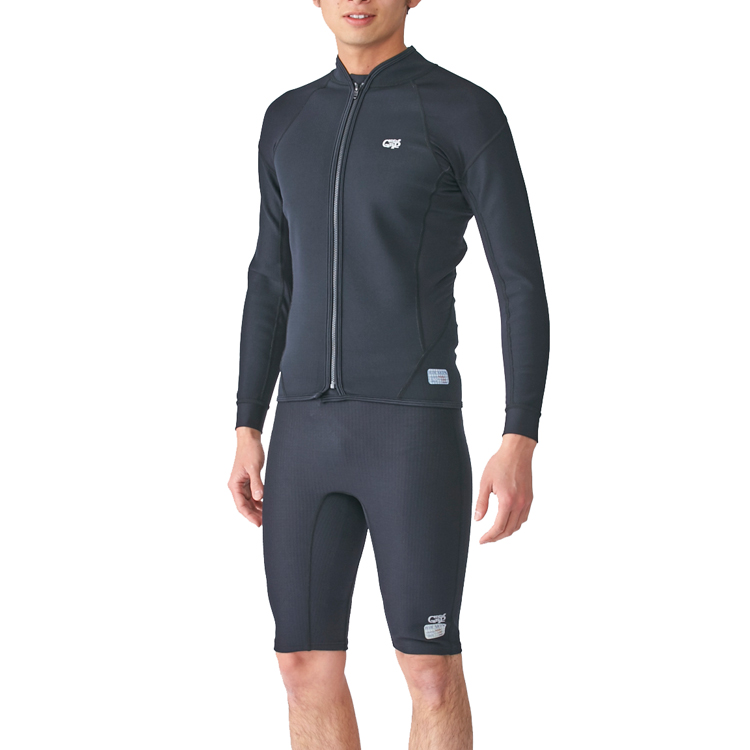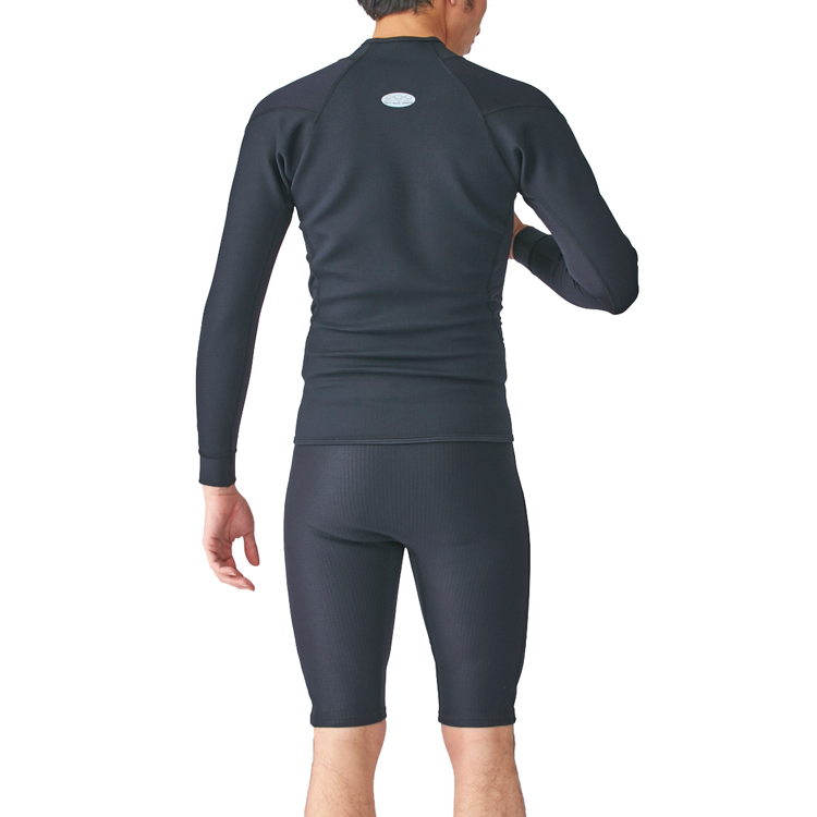 1mmのウェットスーツ生地に熱反射コーティング加工をすることで、高い断熱性、蓄熱保温機能、防水機能を発揮。