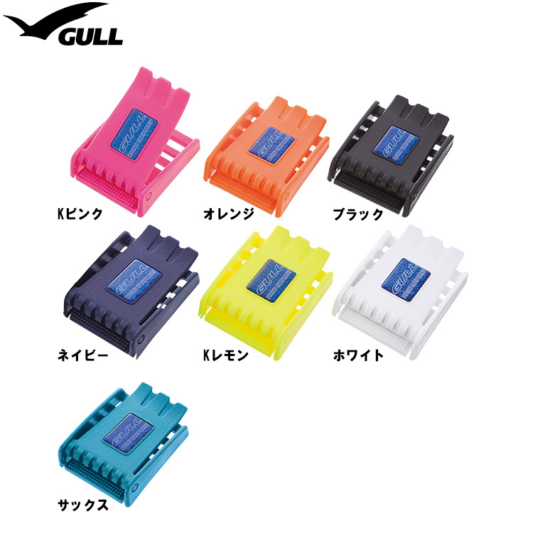 GULLのプラスチック性ウェイトバックル。カラー全7色:蛍光ピンク、オレンジ、ブラック、サックス、ネイビー、蛍光レモン、ホワイト