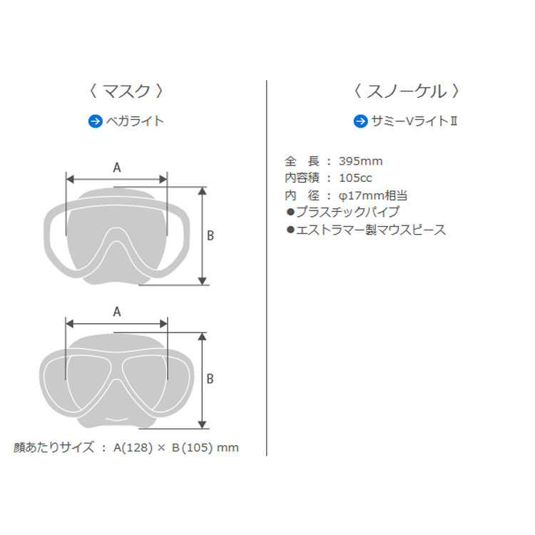 [ AQA ] シュノーケルセット KZ-9072N ベガライト&サミーVライト2 2点セット(レディース) [シュノーケリング用 ]