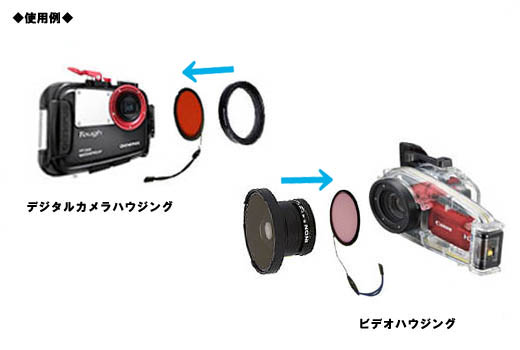海水(淡水)の色による色カブリを補正するためのフィルター。フィルターを通して撮影することで、自然な色になります。
