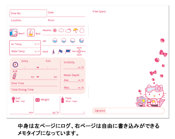 ◆23ダイブ記録できます。(見開き1ページで1ダイブ分)