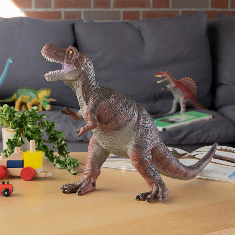 やわらか素材のあそべるフィギュア ビニールモデルから登場した、全長50cmを超えるティラノサウルスのプレミアムフィギュアです。小さなお子様が触れても安全な素材を使用しているため、リビングや子ども部屋に安心して遊んでいただけます。