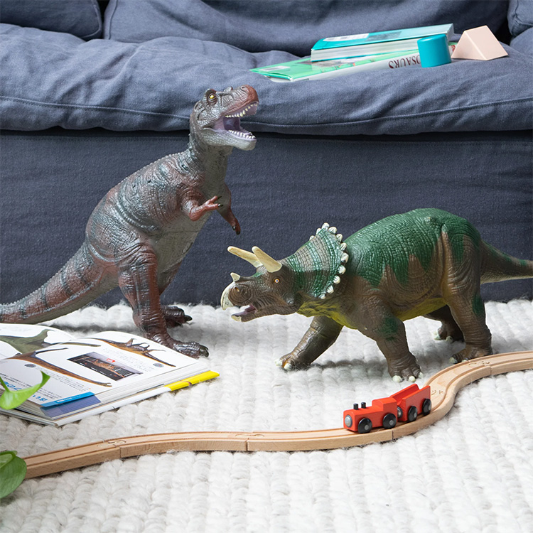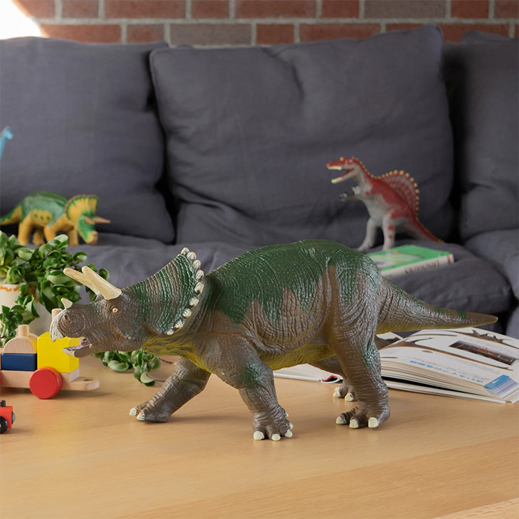 やわらか素材のあそべるフィギュア ビニールモデルから登場した、全長50cmを超えるトリケラトプスのプレミアムフィギュアです。小さなお子様が触れても安全な素材を使用しているため、リビングや子ども部屋に安心して遊んでいただけます。