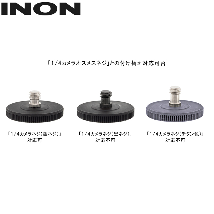 本製品と付け替えが可能な1/4カメラネジは、「1/4カメラネジ(銀ネジ)」のみとなります。