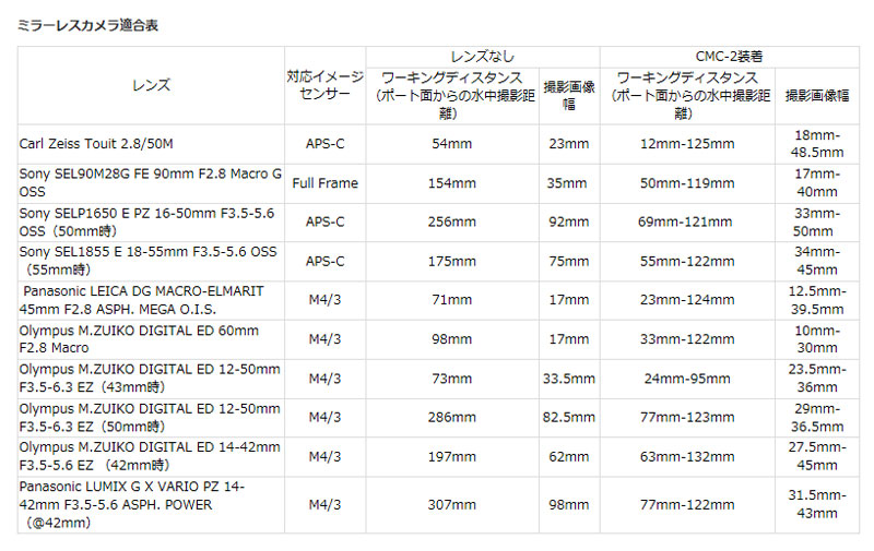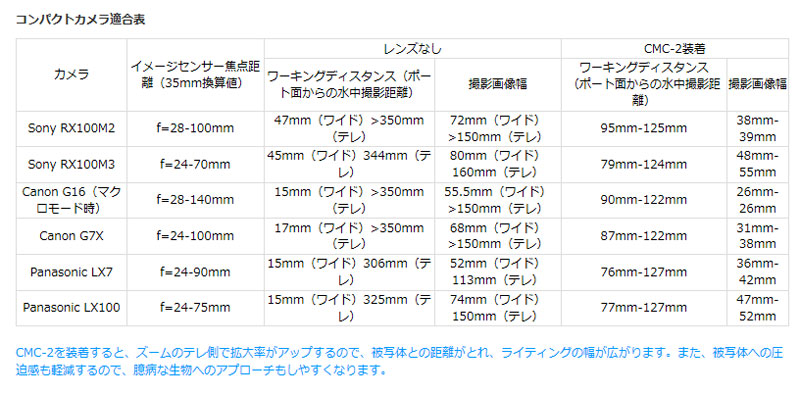コンパクト/ミラーレスカメラハウジング用に設計された水中撮影専用マクロコンバージョンレンズです。ルーペ倍率(光学的倍率)は2.8x。CMC-1よりもワーキングディスタンスが広く撮影しやすいのが特徴です。