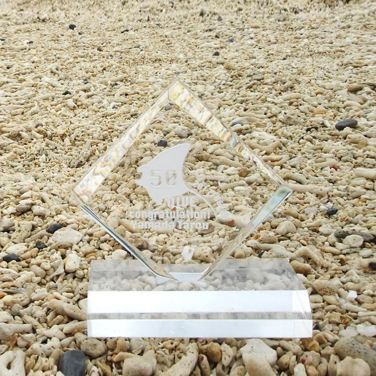 ◆ご注文時、備考欄に記念ダイブトロフィーに記載する「お名前」、「日付」、「ダイブ本数」を記入願います。