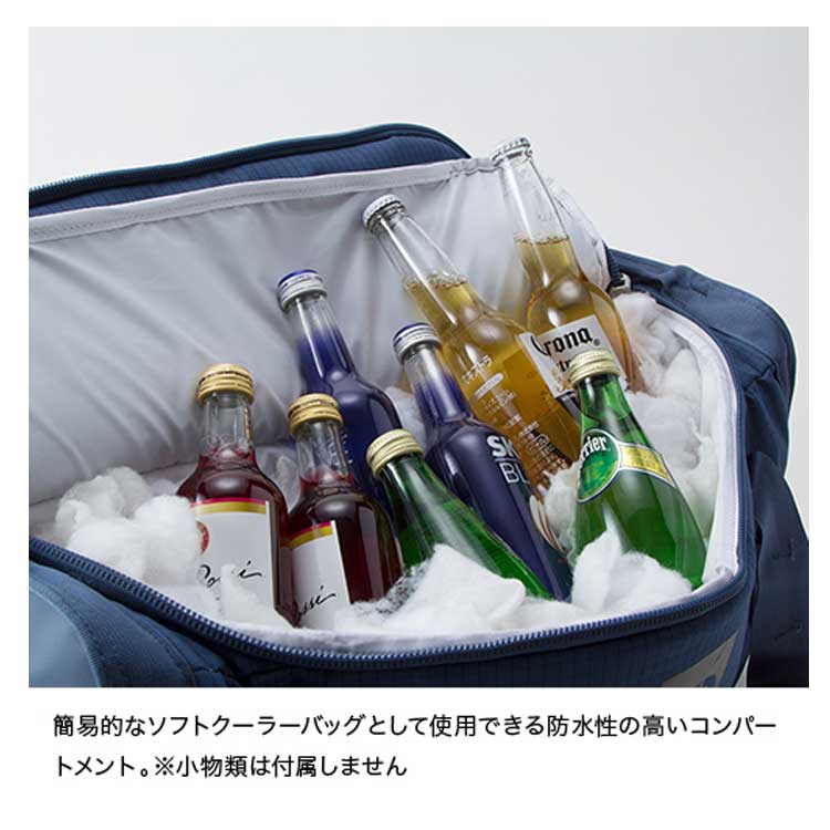 簡易的なソフトクーラーバッグとして使用できる、防水性の高い52L容量のダッフルバッグです。コンプレッションフックは、ボトルオープナー兼用の金具を採用。強度を高めたボトム構造。小物の連結に便利なデイジーチェーンを配備。コンパートメント中央でウエットとドライに仕切りを設け、衣服などの装備と一緒に、氷で冷やした飲料や食材を持ち運ぶことができます。