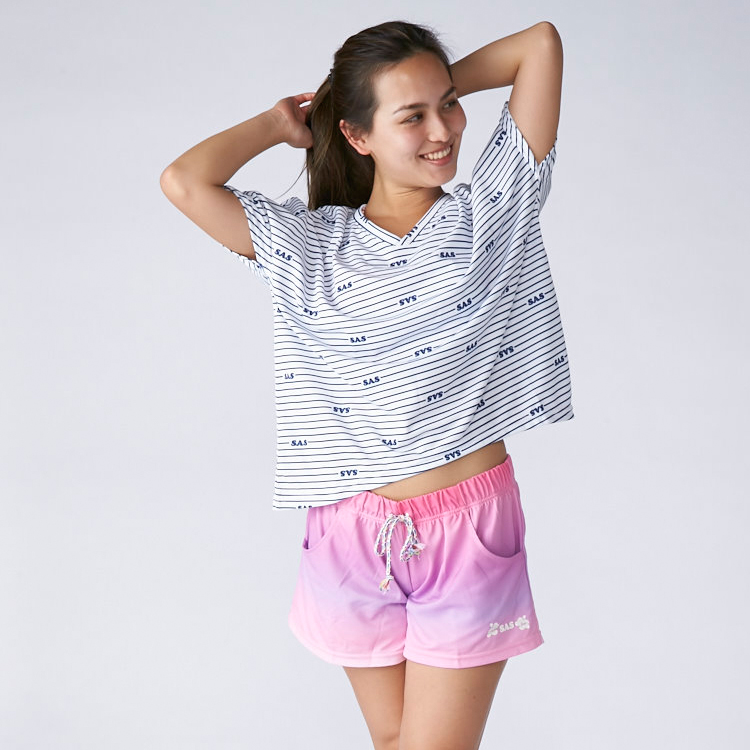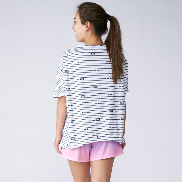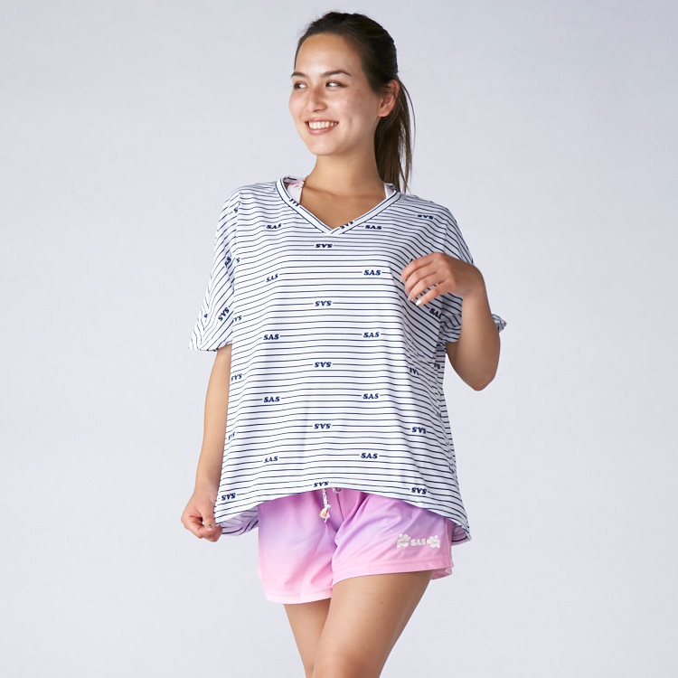 全面にSASのロゴが散りばめられたVネックタイプのゆったりとしたビーチウェア。