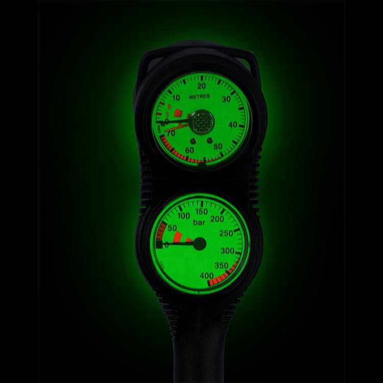 水深計と残圧計の2連と、裏側にコンパスを装備。