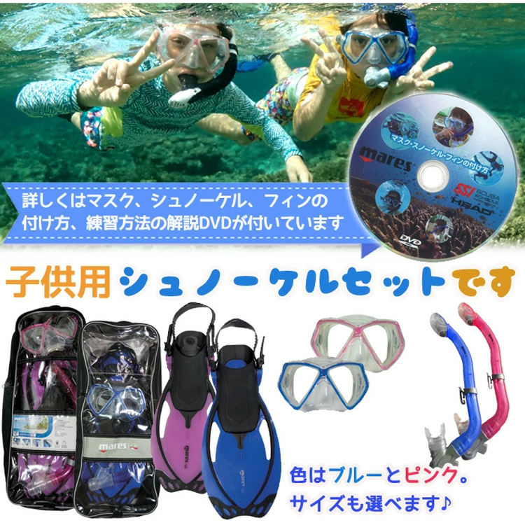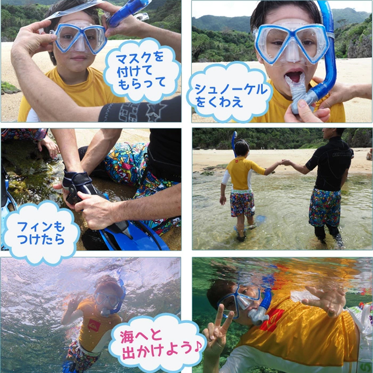 ダイビング器材で人気のシュノーケリング3点セット。