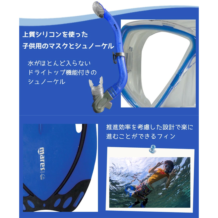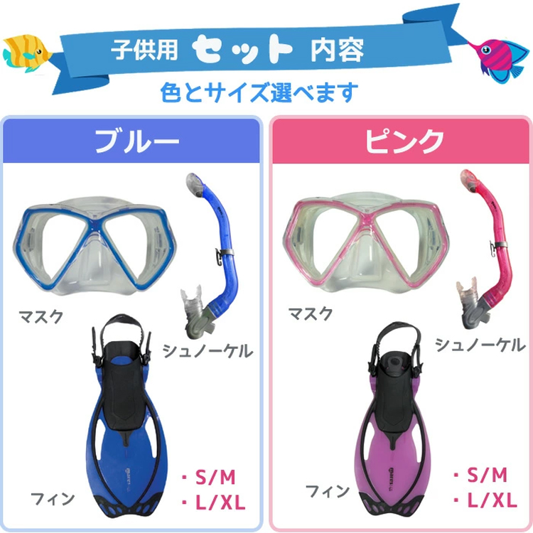 子供用マスク、スノーケル、フィンの3点セット