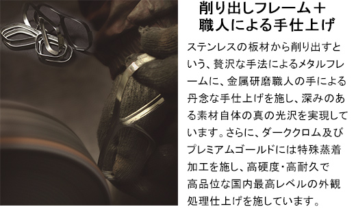 強靭な削り出しステンレス合金フレームに職人の手によるバフ鏡面研磨仕上げを施したバイメタルシリーズのハイエンドマスク!低反射バイオARレンズ標準装備!