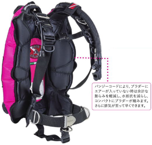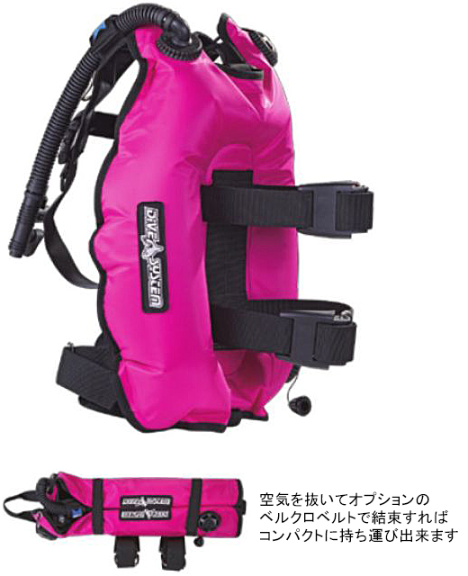 講習で使われるBCや各メーカーから出ているBCジャケットとは違いバック(背中)にのみエアが入るタイプの為、 エアバランスも変わってきます。