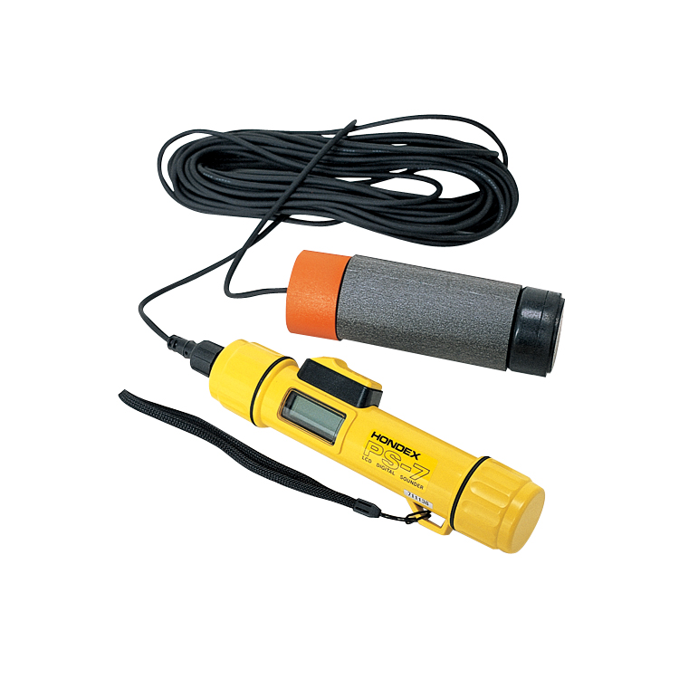 AQUALUNG(アクアラング)のコンパクトなポータブル水深計測器、フロート付き。海底からの超音波反射時間により水深を測定します。