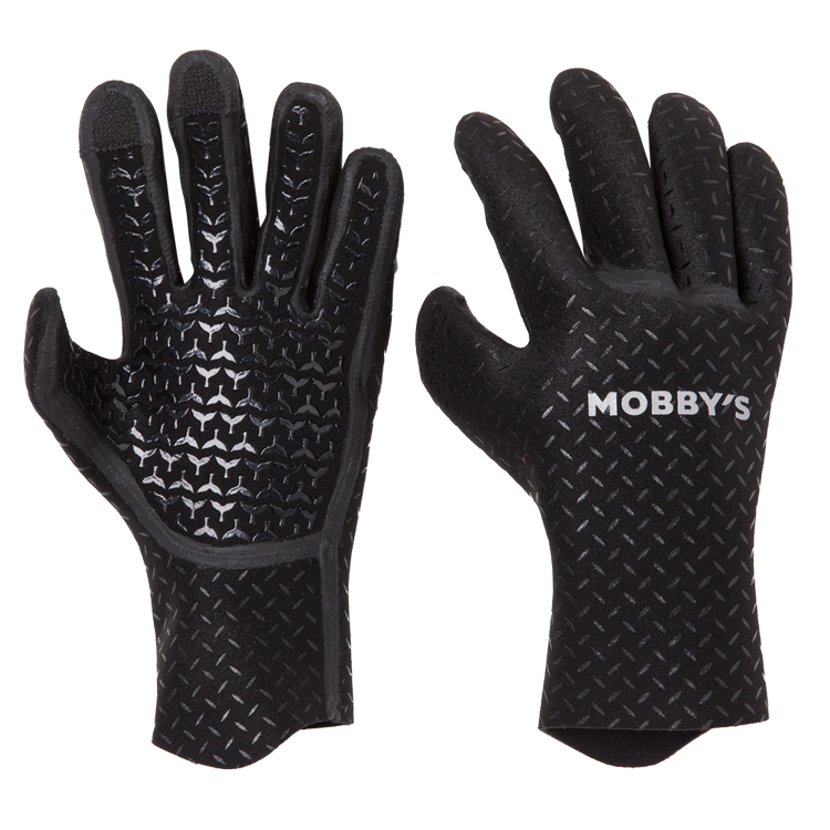 ウエットスーツやドライスーツで人気の「Mobby's(モビーズ)」のウインターグローブ。ハイストレッチジャージを全面に採用して指を動かしやすくした、2.5mm厚のクロロプレン製グローブです。