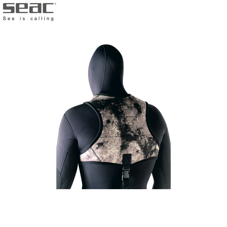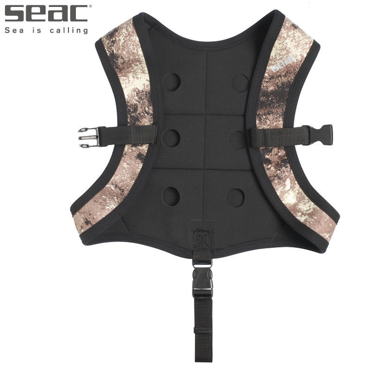 イタリアのダイビングメーカー「SEAC」のウエイトジャケット。ウエイトベルトの様に腰への負担を減らし、バランス良くウェイトを配置させられます。