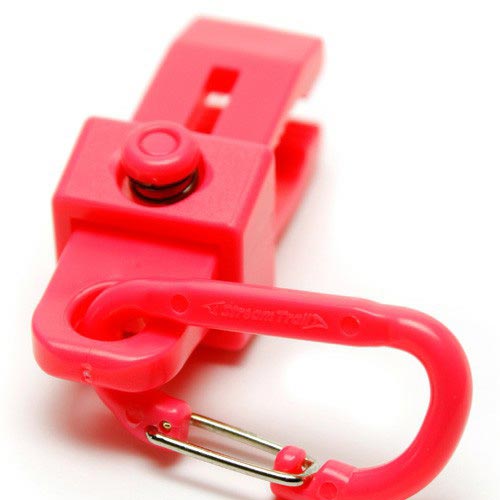 HUNG UPはクリップにカラビナが付いた便利なアイテム。アリゲータマウスにより、強いグリップでしっかりと掴むので、いったん挟んだものはめったに滑りとれることはありませんが、片手でボタンを押しながらスライドさせると簡単に取り外しできる仕様になっています。