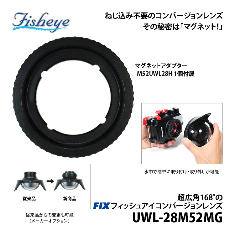 磁力で着脱!ねじ込み不要のコンバージョンレンズ【UWL-28M52 の特徴】