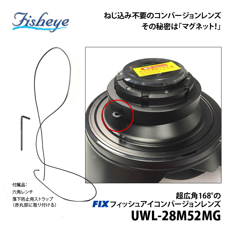 付属品:レンズフード、ネオプレーンドームポートカバー、FIXマグネットアダプターM52UWL28H、六角レンチ、落下防止用ストラップ