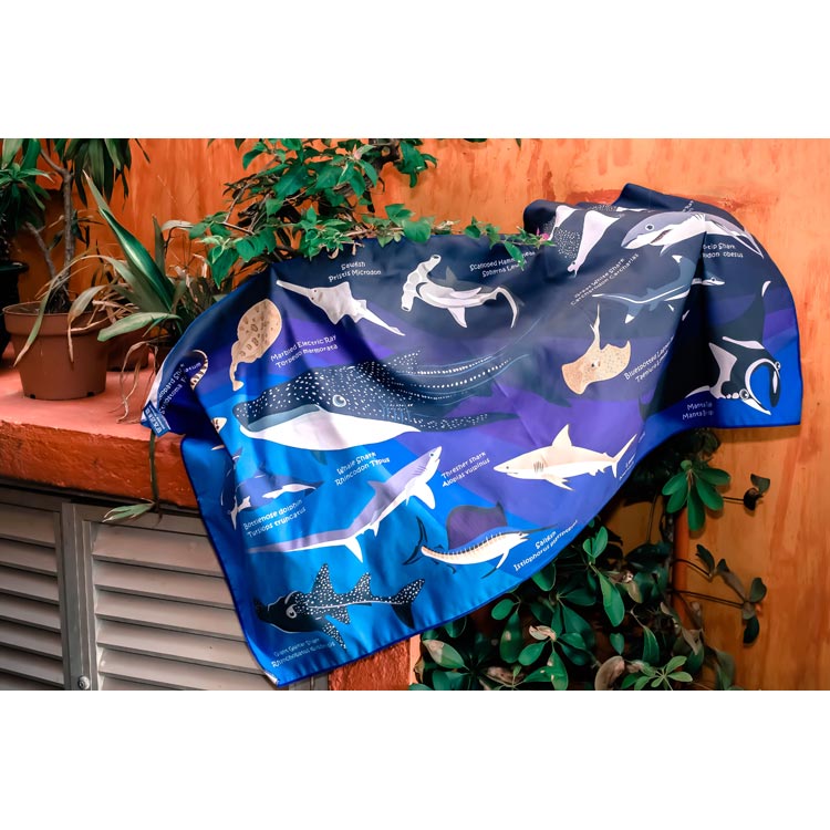 海の生物(ジンベイ、ハンマーヘッド、マンタ等)をプリントした肌触りの良い速乾性のドライタオルです。