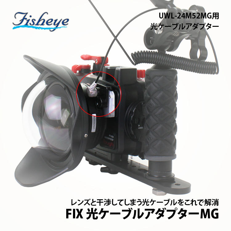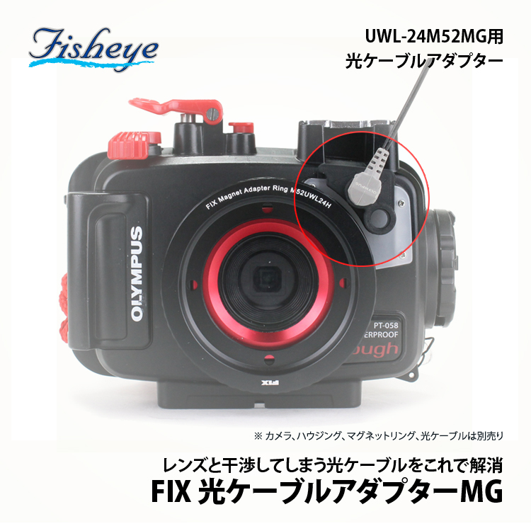 WEEFINE ワイドコンバージョンレンズ UWL-24M52MGを使用する際、コンデジハウジングへ光ケーブル取り付け時に必要「UWL-24M52MG」をオリンパス/TG-3〜TG-7用ハウジングに取り付けると光ケーブル接続部分に干渉が生じます。
