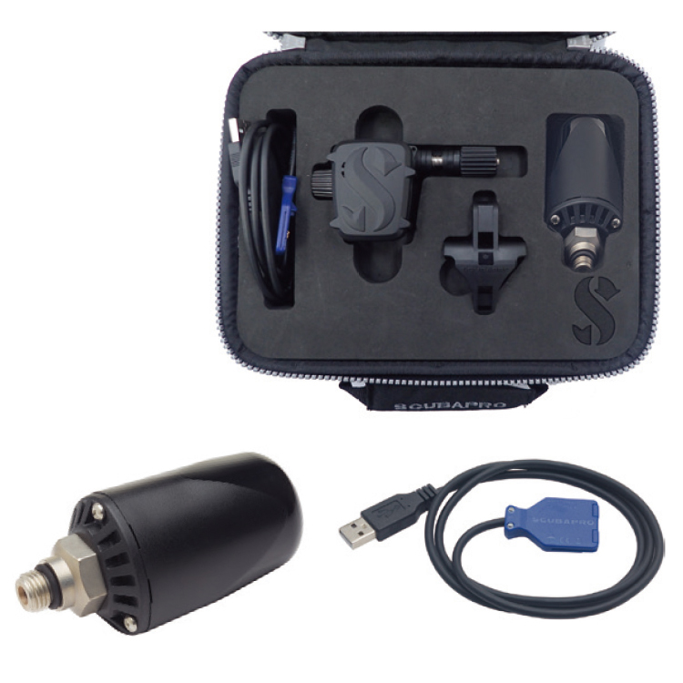 ダイビングコンピュータとタンク間は、トランスミッター(無線)でタンク残圧を監視しでき、マルチガスダイビングにも対応しています。