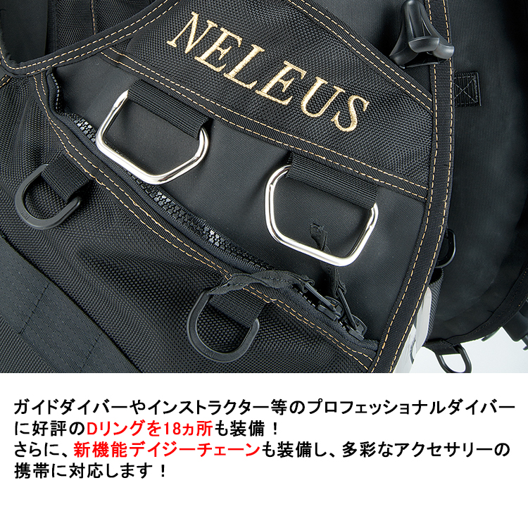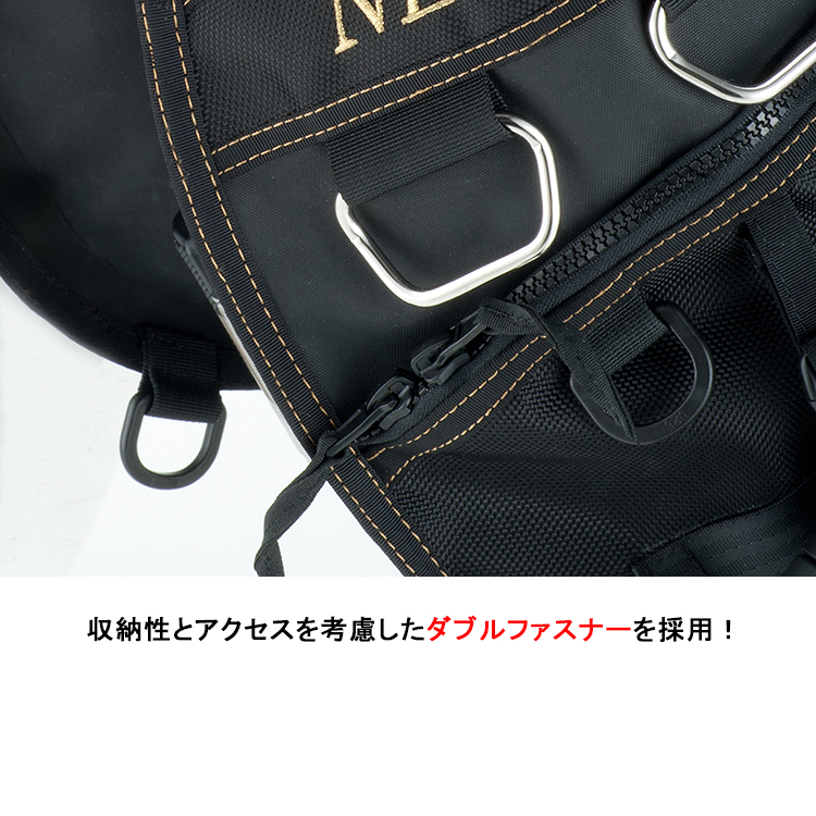 カマーバンド標準装備なのでフィット感も増し、18個も付いているDリングと新機能デイジーチェーンを利用して あなた好みの使用感を実現。