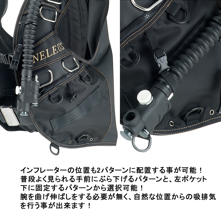 常に安定した水中バランスを得られるシングルバッグ構造で浮力も大きく、水中で動き易いタイプのBC。