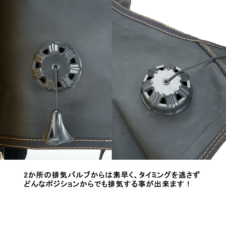 リモート排気機能が付いたインフレーターにより手元のボタンで排気が可能。