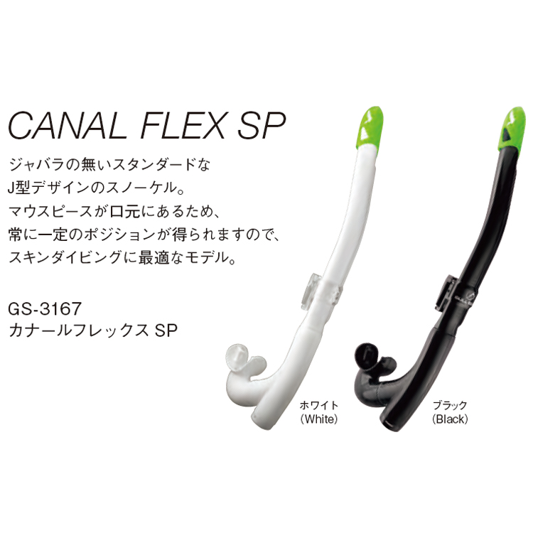 ジャバラのないスタンダードなJ型で可動式マウスピースにより口元に合わせられるスキンダイビングに最適なスノーケル