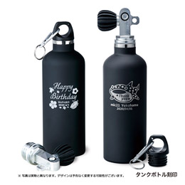 ステンレスボトルに記念の刻印を入れてお求めいただける.