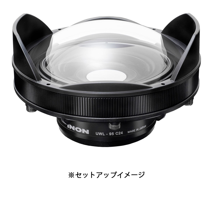 「UWL-95 C24」のレンズに「ドームレンズユニットV」を取り付けることで、水中画角が約95°から約141°までさらに拡大できます。