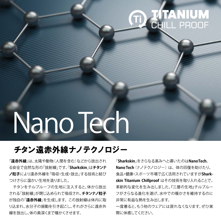 「チルプルーフ」にナノテクノロジーによりチタンを織り込むことで「チルプルーフ」の良さに磨きが掛かりました。 その保温効果はあなたの体で実感してください!