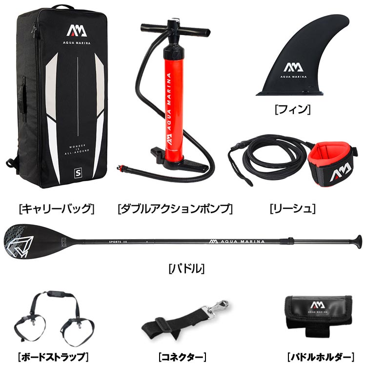 ■セット内容:SUP本体、ハンドポンプ、バッグ、パドル、リーシュコード、フィン(センター×1)、ボードストラップ、コネクター×3、パドルホルダー