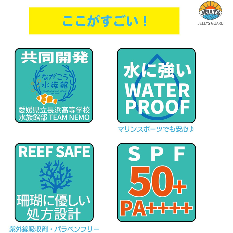 クラゲよけ JELLYS GUARD SUN SCREEN SPF50+ PA++++ ジェリーズガード フェイス&ボディクリーム クラゲ除け 日焼け止めクリーム くらげ避け クラゲ対策 保湿クリーム 海水浴 サーフィン マリンスポーツ