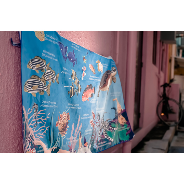 [ OCEANARIUM ] ドライタオル T05 TURTLES & CORAL FISH IDENTIFICATION 80cm x 140cm