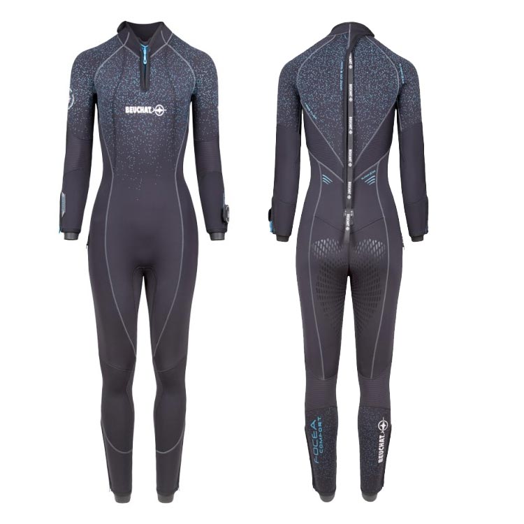 BEUCHATが誇る技術の結晶、最新ウェットスーツ。数十種類のネオプレーンの使用と独自開発の生地で高い保温性と優れた可動性、着脱の良さを実現温かく、動きやすく、着脱しやすい。