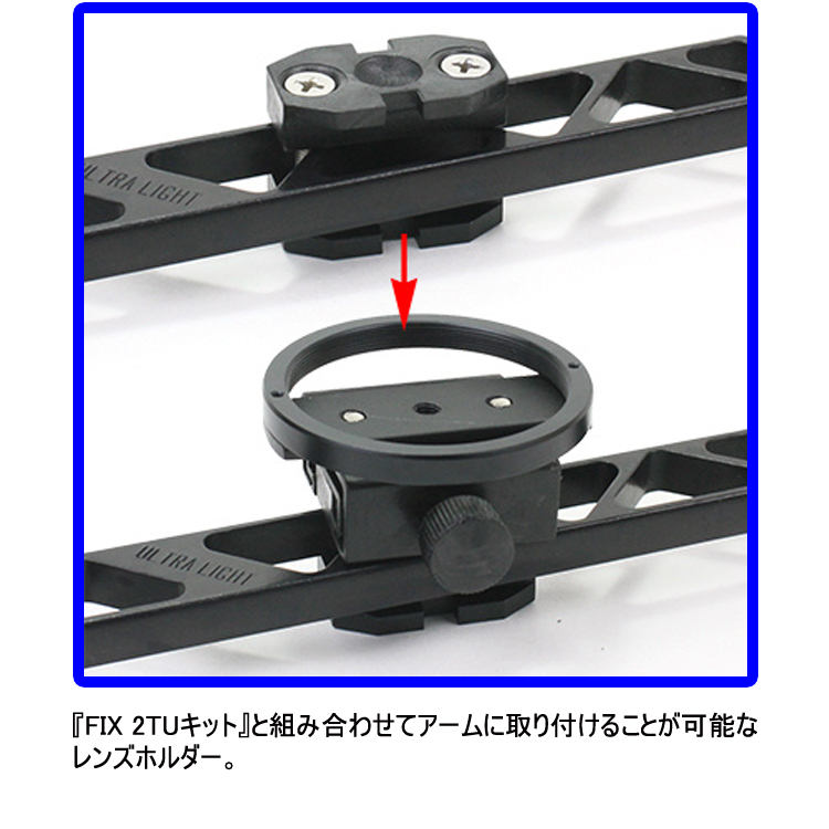 『FIX 2TUキット』と組み合わせてウルトラライトアームに取り付けることが可能なレンズホルダー。M52マウント用
