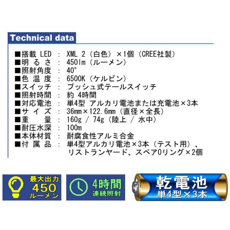 ■付属品 : 単4型アルカリ電池×3本(テスト用)