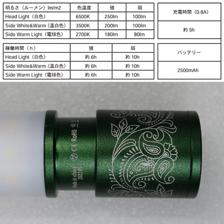 ランタンは雰囲気に合わせて色温度も選択可能。