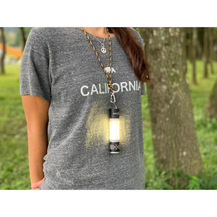 シチュエーションに合わせてハンディライトにもランタンにもなるLEDライト。ハンディライトは照射範囲をズームして調整することで広範囲を照らしたり、