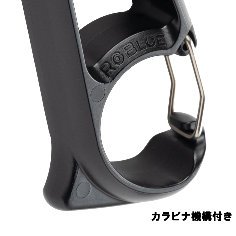 BCなどに直接取付けられるカラビナ機構付きのガングリップタイプ。 カラビナ部、ワイヤーゲートの形状を見直し操作性が向上しました。 すべてのRGBlue製バッテリーモジュールに取り付け可能です。