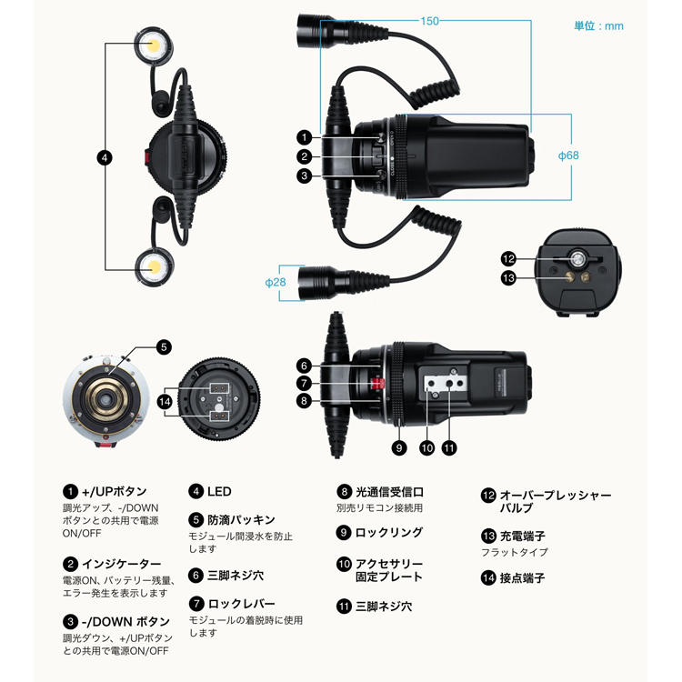 ◆大きさ 最大径/Max. Φ68mmX150mm(突起部を除く)